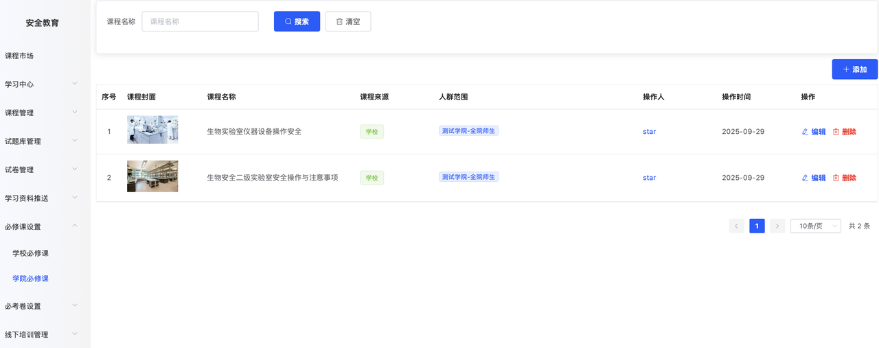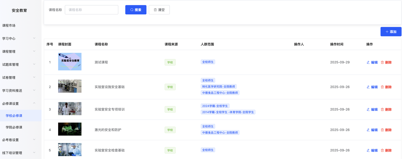 通常情况下,学校会设定一些安全通识要求,这些要求旨在确保所有人员,无论是教师还是学生,都必须参与相关的安全教育学习,以提升整体的安全意识和应对能力。为了满足这一普遍需求,可以通过在系统中设置必修课程来实现。