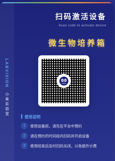 对于现场使用的设备,小来实验室平台提供了与该设备绑定的现场二维码记录使用的时间。对于使用了配套电源管理硬件的设备,扫码会开启相应的设备。